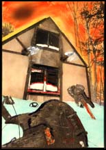 ![]() When I heard about the upcoming THRaK aTTaK cd from Crimson, I pondered, what very radical photo could I take to use for this package. The burnt instruments, of course! I tried projecting the band photo onto them - didn't work. Finally, in the Blizzard of '96, I layed them out in the snow, with the burnt barn behind them. Shot in b&w, hand tinted the result and painted in burning sky. Radical! |